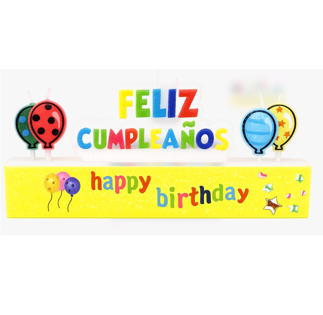 Haz que tu torta hable por sí sola con estas originales velas con letras de colores que forman la frase “Feliz Cumpleaños”y “Happy Birthday”. Ideales para fiestas bilingües o temáticas especiales.