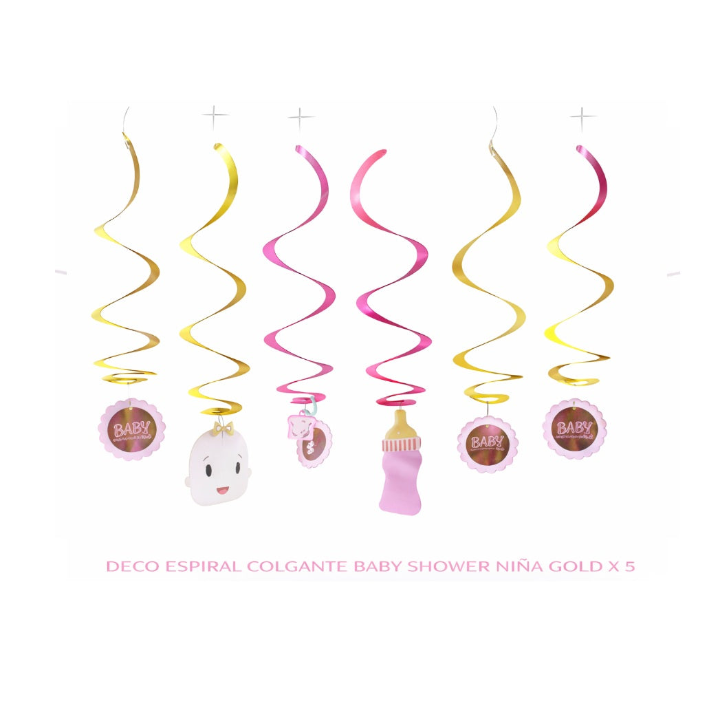 Deco Espiral Colgante Baby Shower Niña GOLD X 5